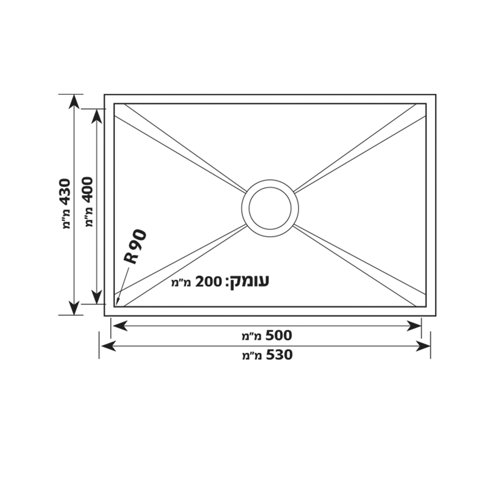 עומק משטח (חיצוני) מינימלי: 55 ס”מ